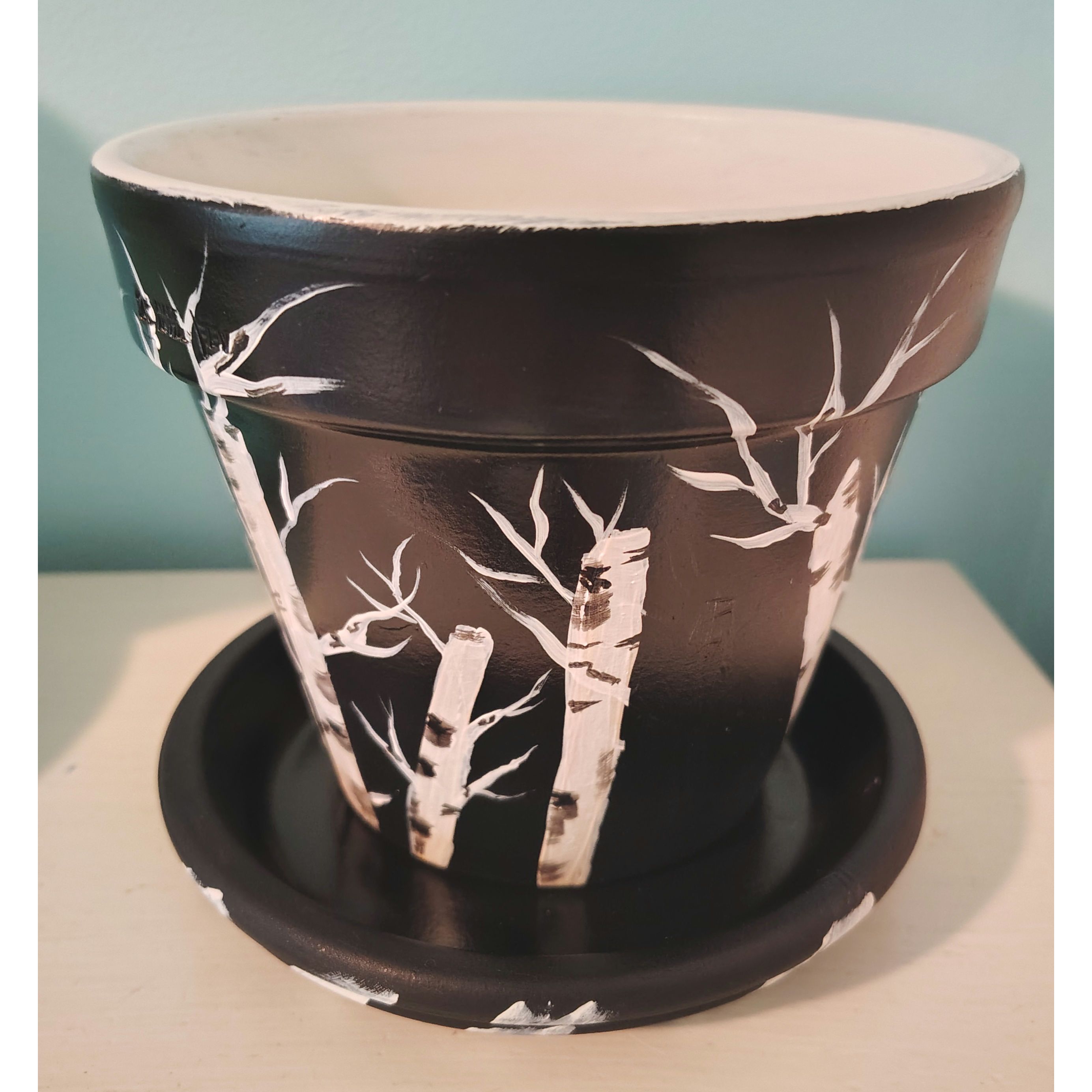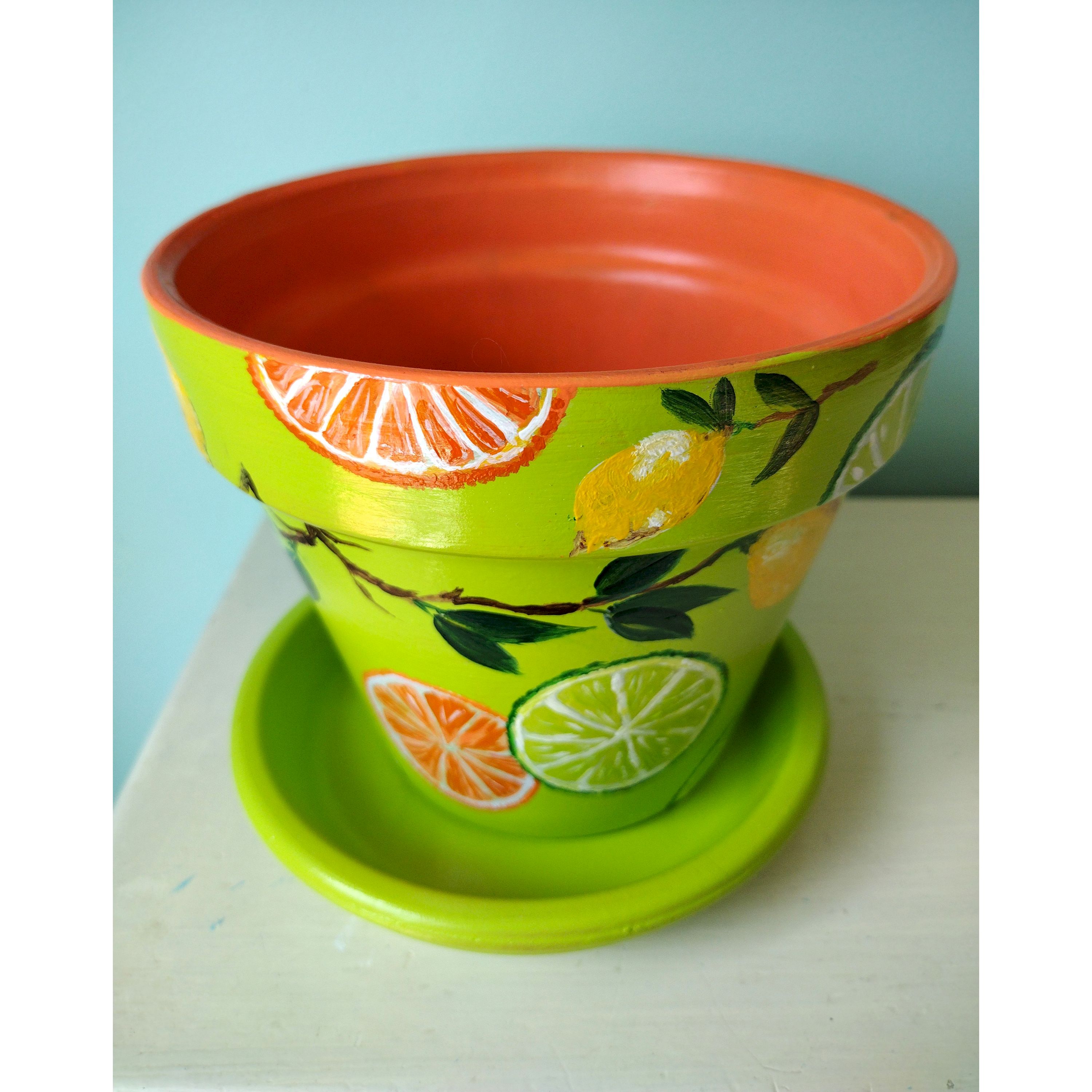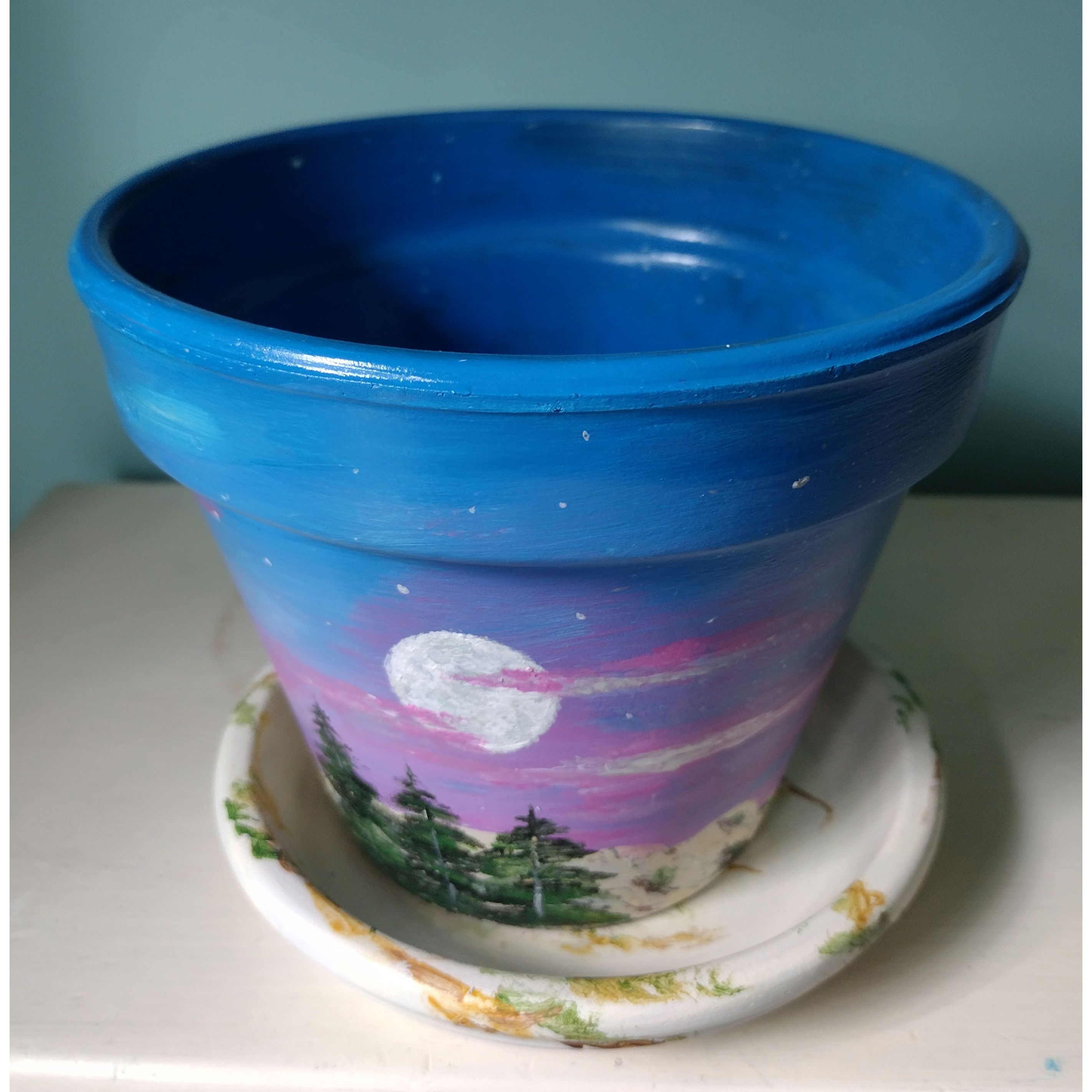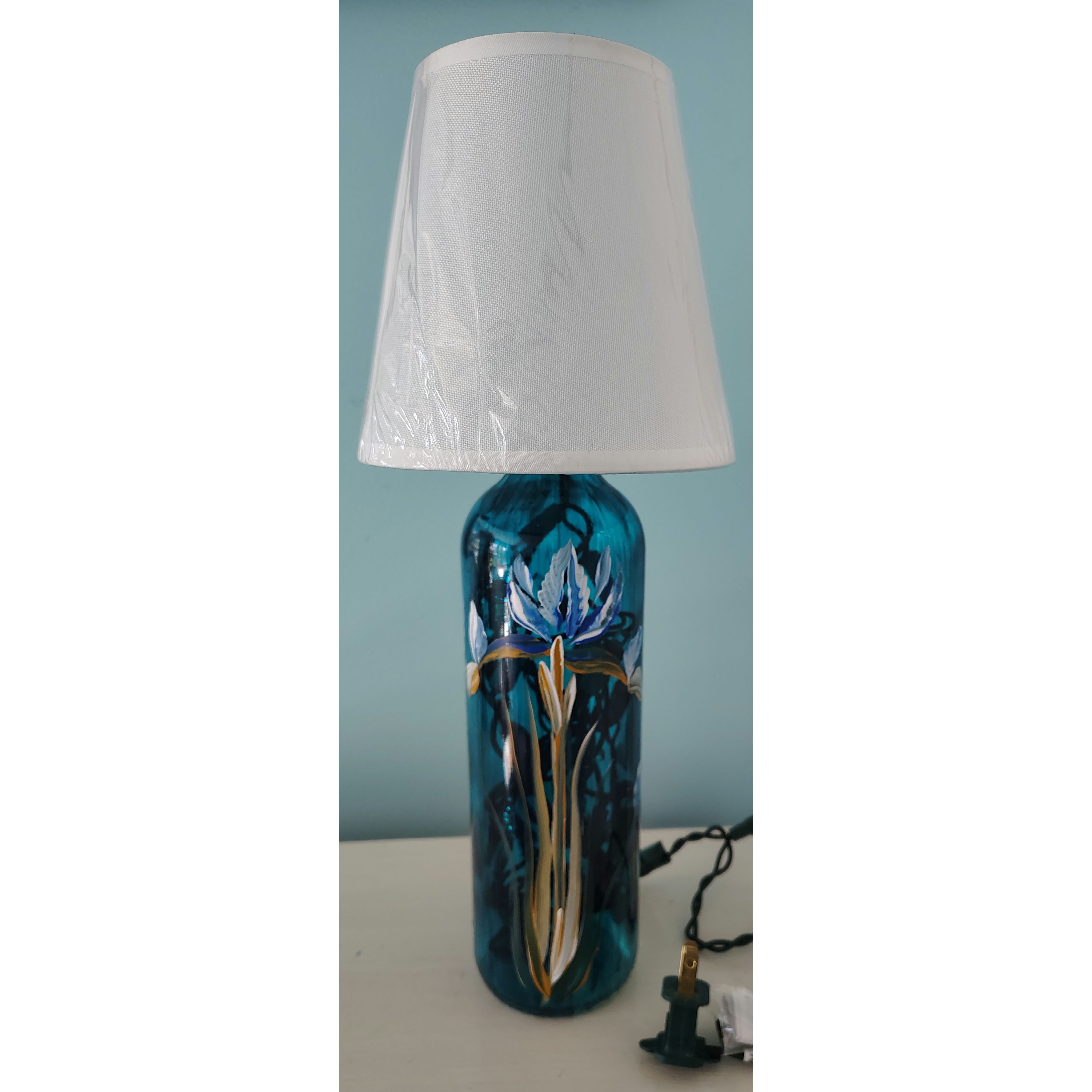 I specialize in hand painted glassware, lighted bottle lamps and clay pots. Florals and landscapes are my best designs.