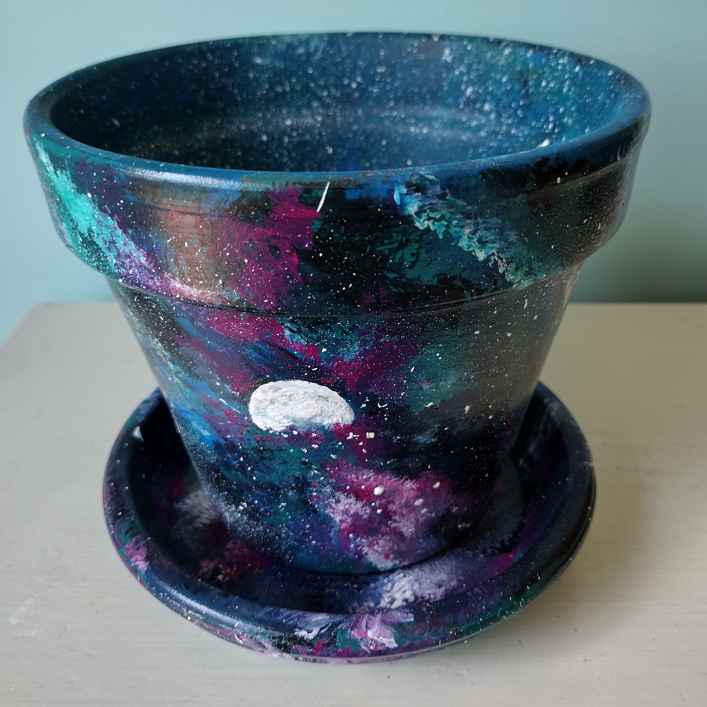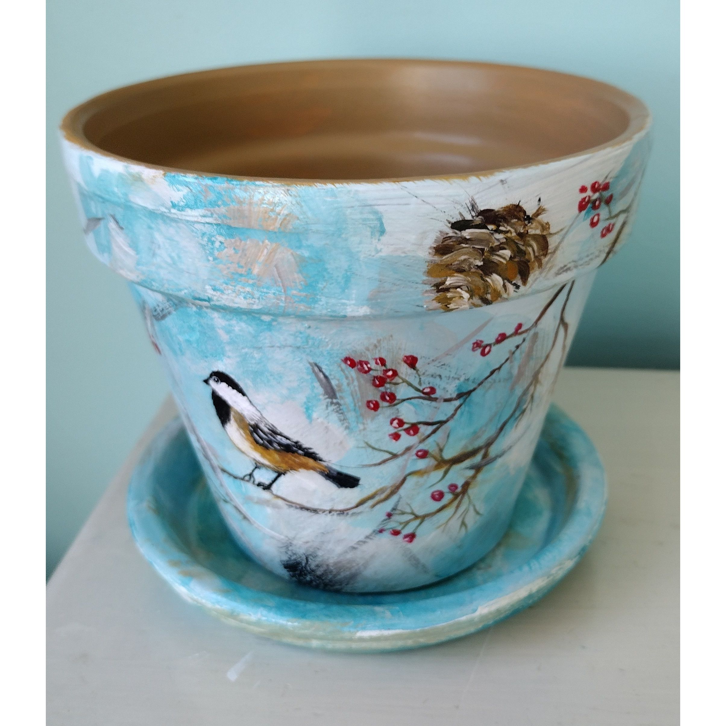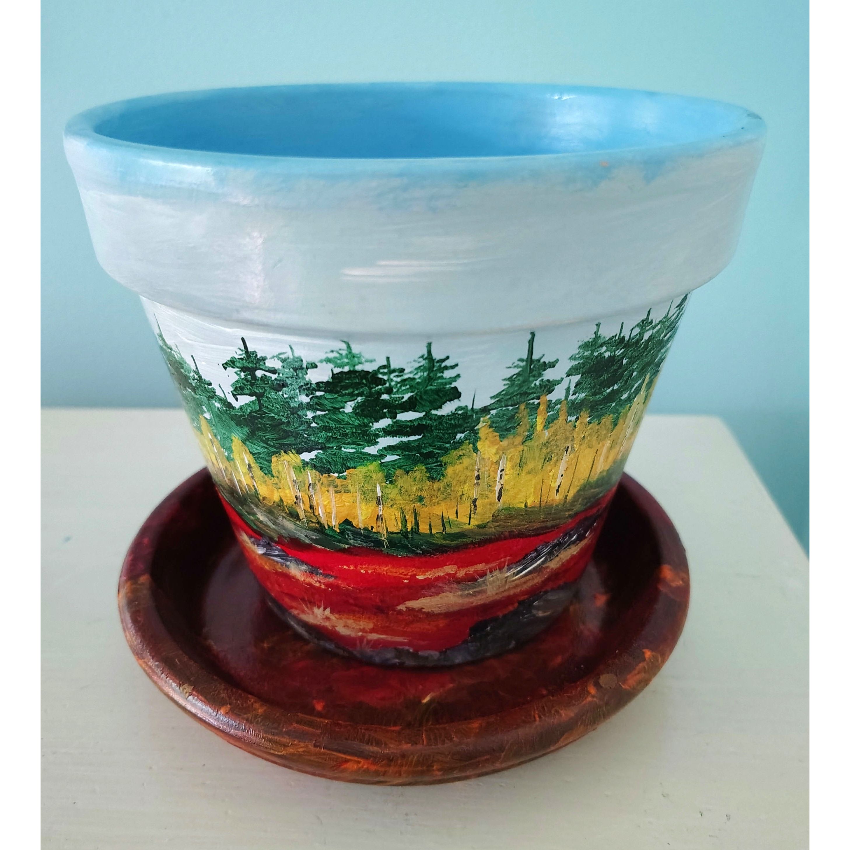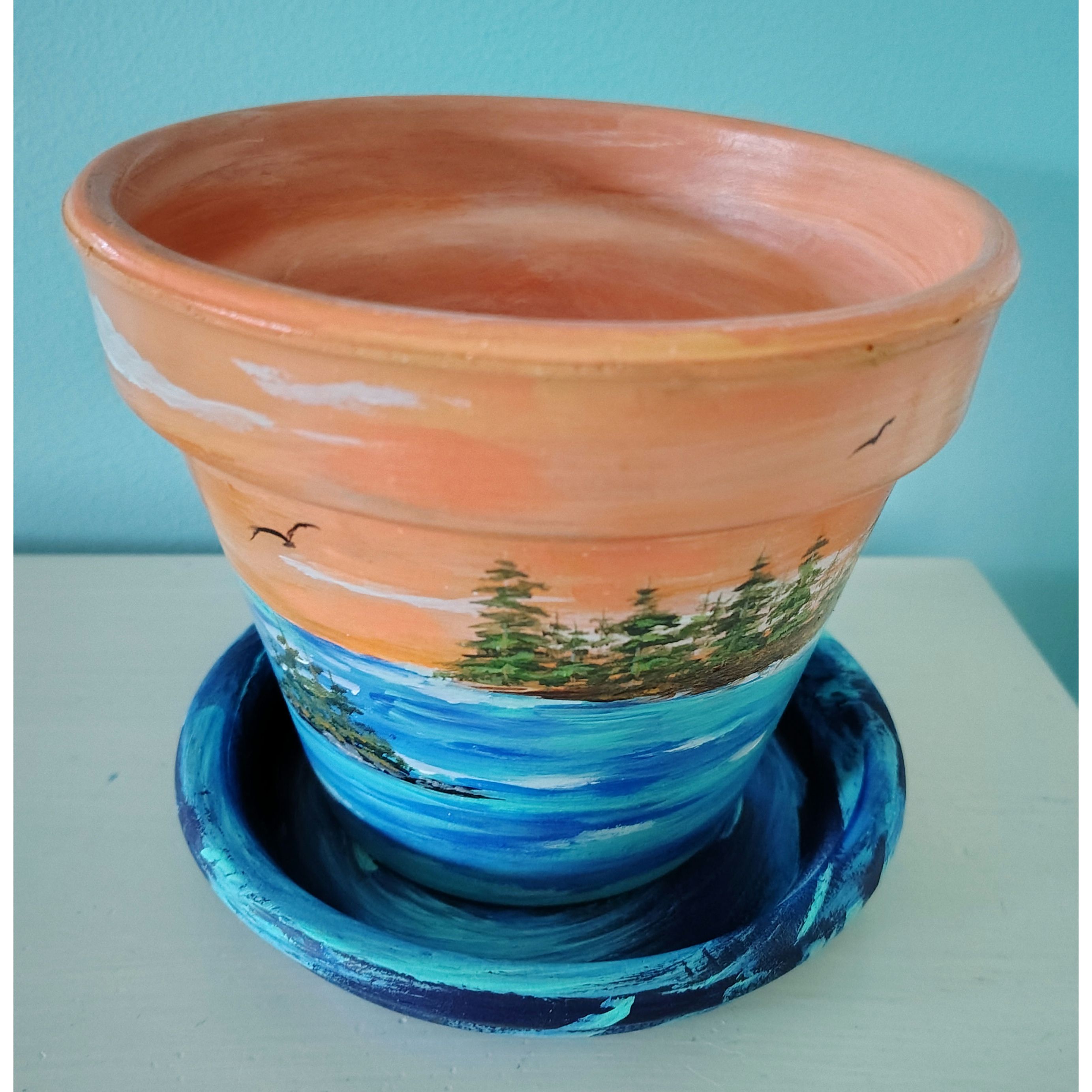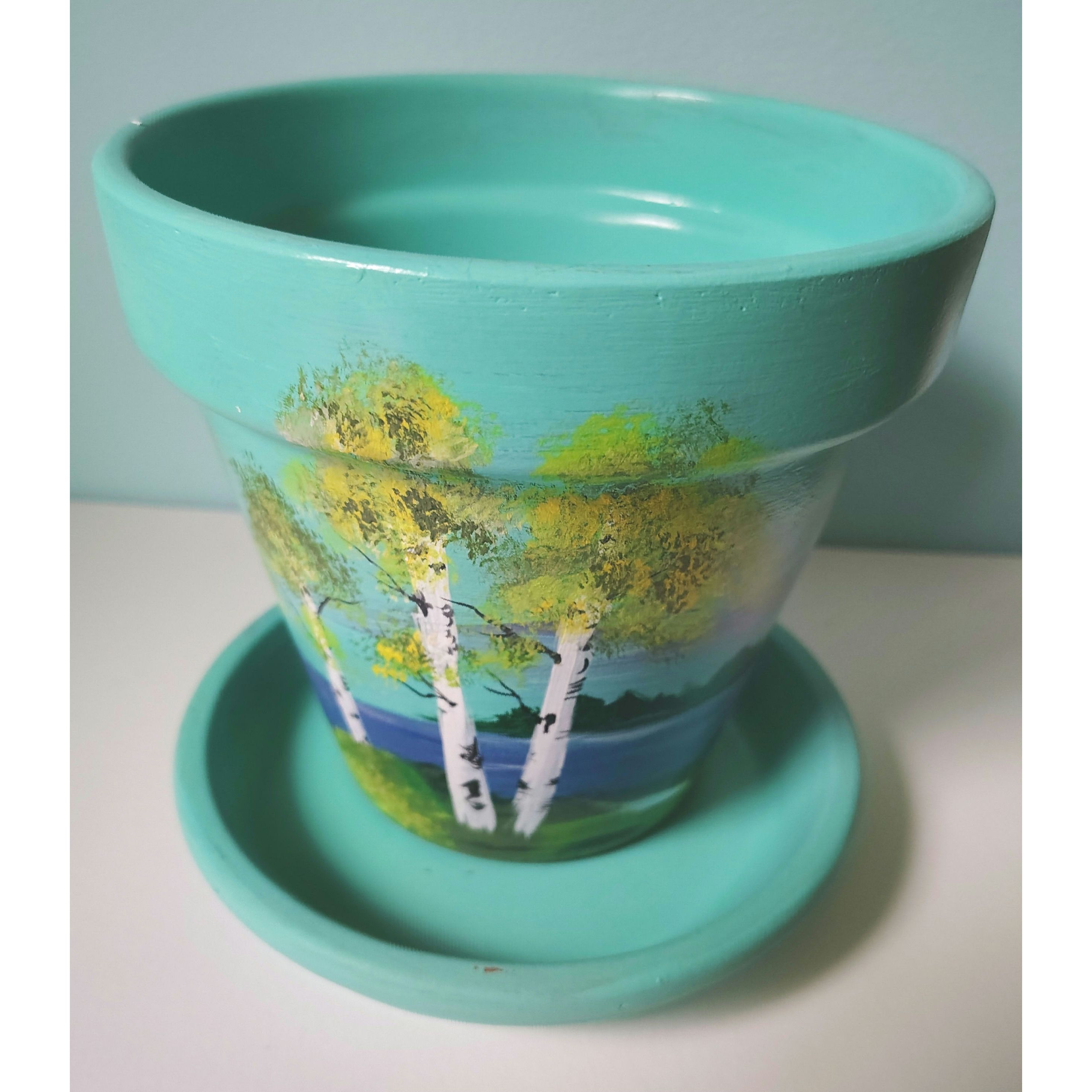 I specialize in hand painted glassware, lighted bottle lamps and clay pots. Florals and landscapes are my best designs.